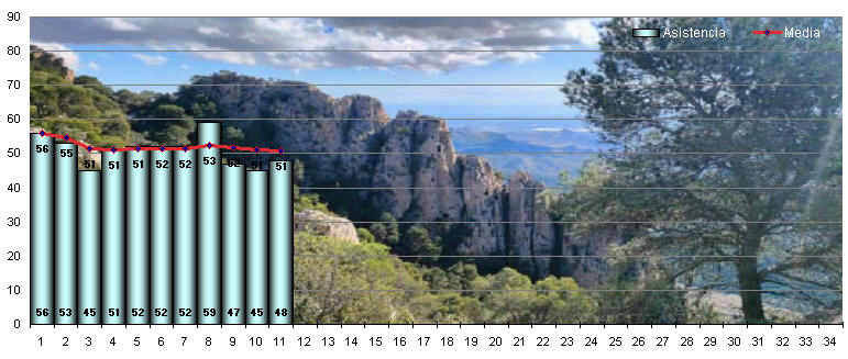 | 23 | Emilio Martínez | 11 | 33,50 | 133,60 | 4960 | 23 | Juan Paricio | 9 | 27,50 | 114,60 | 4060 | |